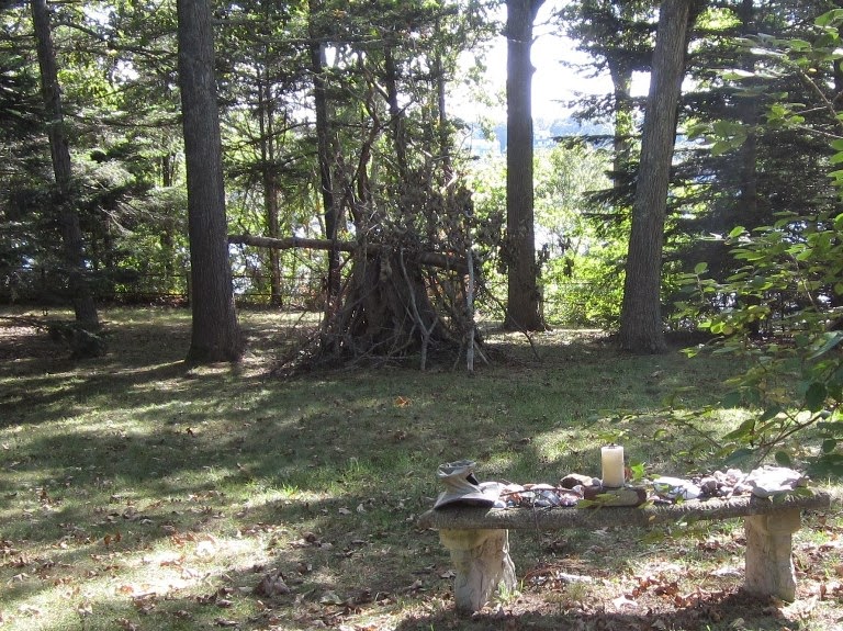 My friend and I decided to leave our own offering, so we made a make-shift medicine wheel out of sticks and feathers we found on the ground. Then, we hung it in a tree. I think we did a pretty good job!
